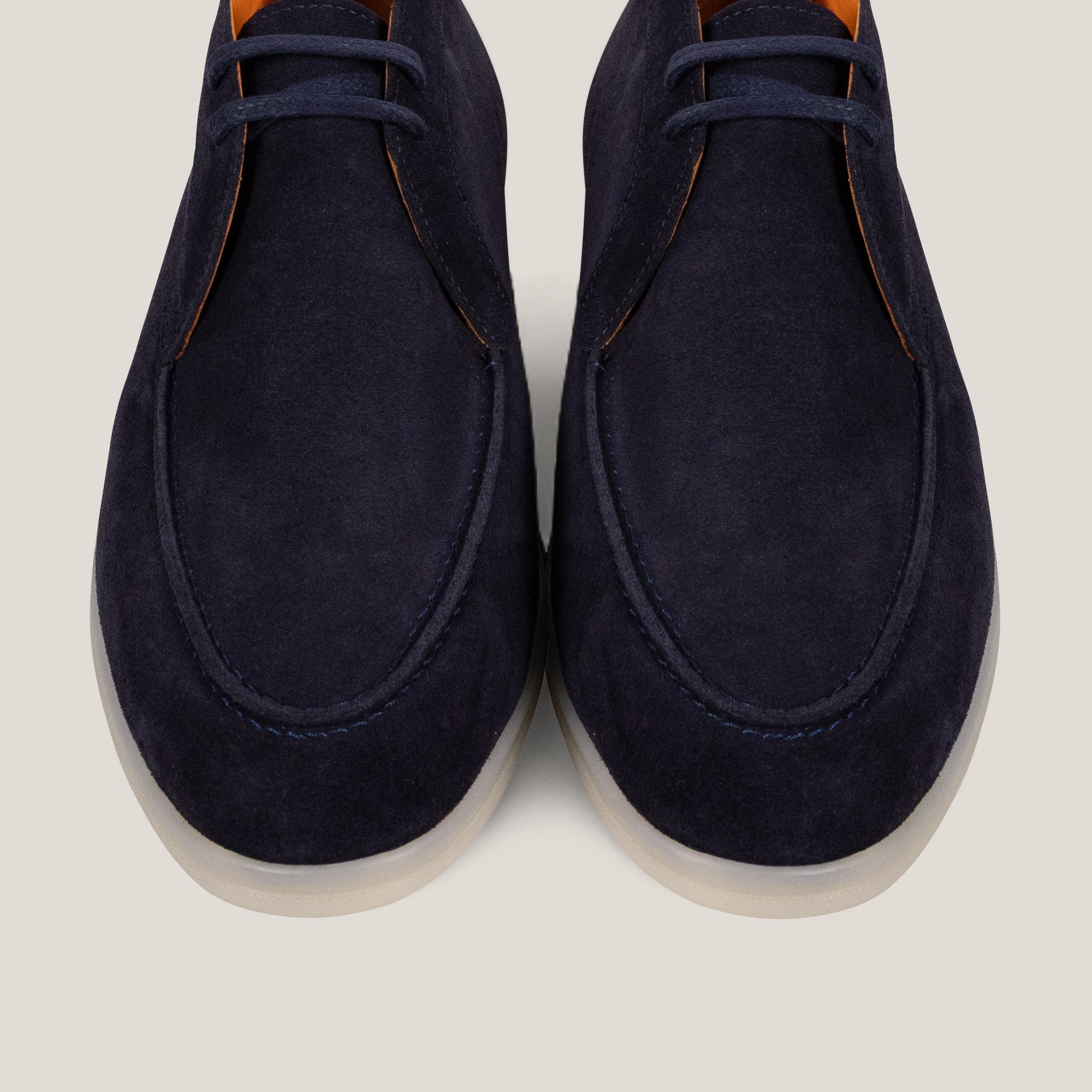 Originally derived from formal wear, the Chukka Boot has evolved into a versatile footwear option for smart casual and urban environments. The Lecco Dark Navy Suede Chukka Boots offer the perfect blend of traditional craftsmanship and modern comfort, suitable for various occasions.