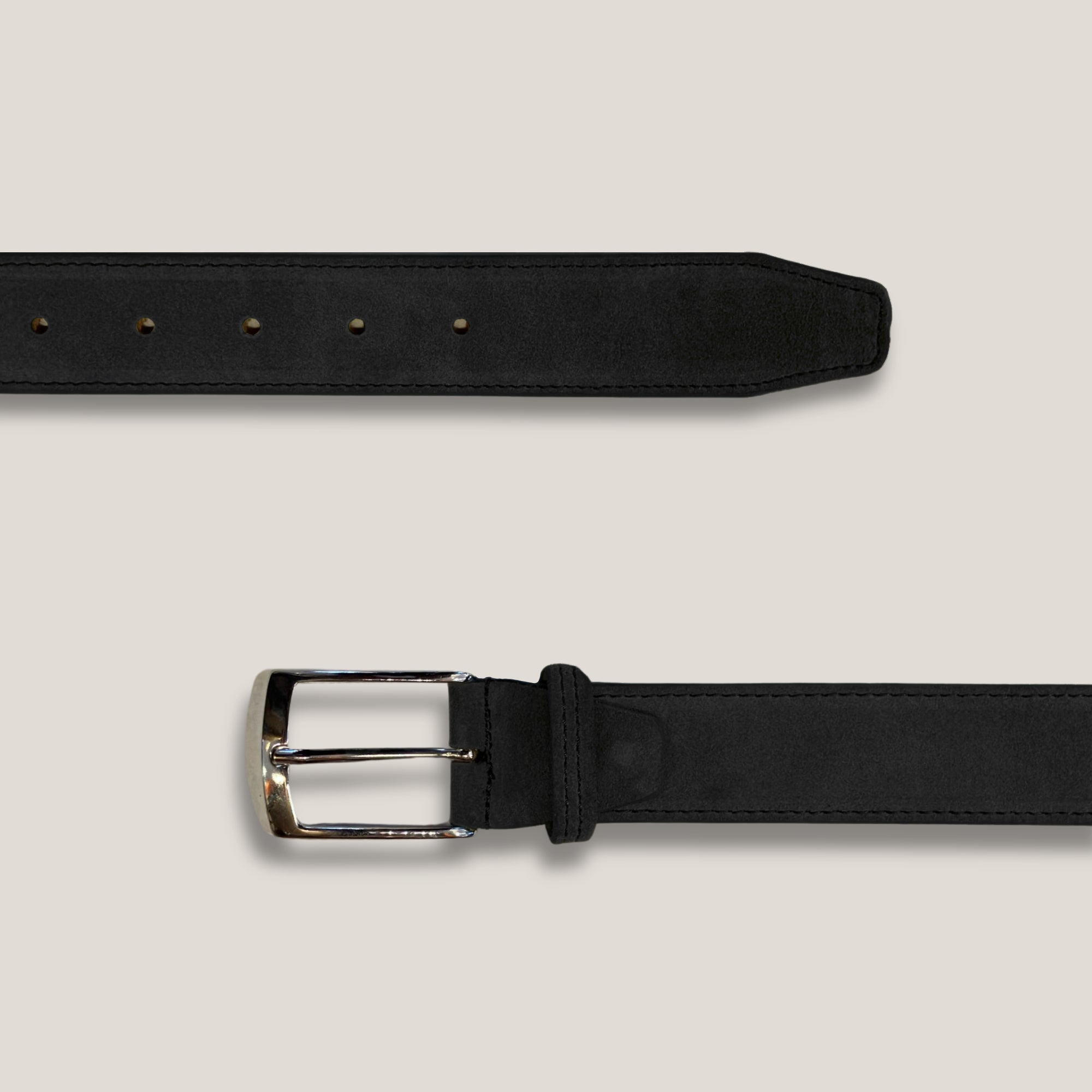 Our handmade Italian Suede belts match exactly with our handmade shoes. The belt has a beautiful silver colored Italian buckle. The width of 3.5 cm is suitable for both casual trousers and (suit) trousers. The length can easily be shortened by the single screw system.