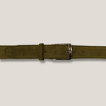 Our handmade Italian Suede belts match exactly with our handmade shoes. The belt has a beautiful silver colored Italian buckle. The width of 3.5 cm is suitable for both casual trousers and (suit) trousers. The length can easily be shortened by the single screw system.