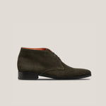 The Prague chukka boot, handcrafted in Italy from premium calf suede, makes a distinctive statement in camouflage green. Its timeless design effortlessly combines casual and refined style, perfect for both city life and social occasions.