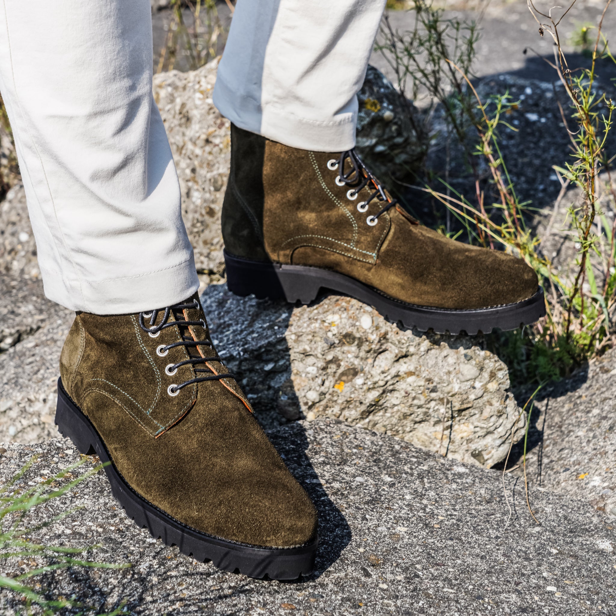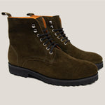 The Bolzano24 Camouflage Green Suede Boots blend rugged outdoor style with urban sophistication. These high-quality men's boots effortlessly transition from nature trails to city streets, offering versatility in both outdoor and smart casual settings.