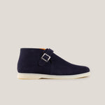 The Biella Navy Blue Suede Monk Strap Boots blend refined style with comfort. Handcrafted from premium 1.3mm Italian calf suede, these boots feature our signature translucent natural rubber sole. Whether you're heading to meetings or exploring the city, their exceptional comfort carries you through the day. Each pair showcases our dedication to craftsmanship, while the deep navy blue and elegant monk strap design elevate any outfit.