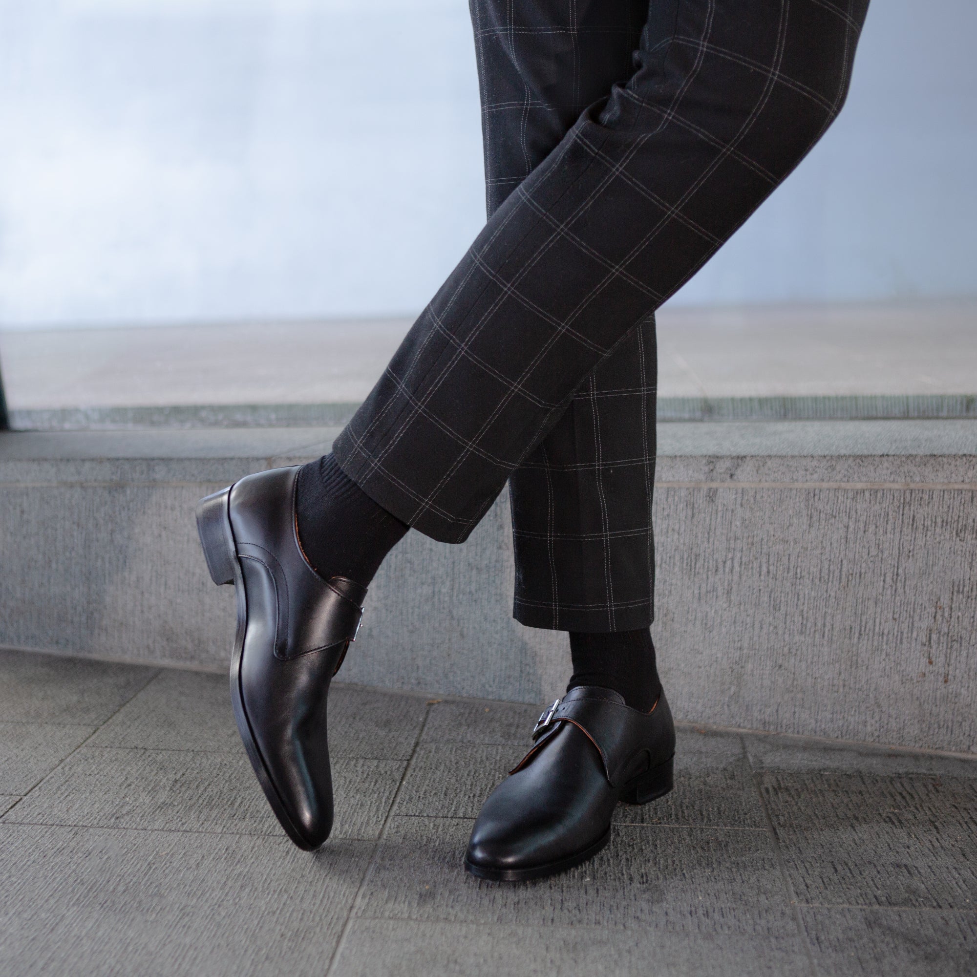 The NY24 Single Monk Strap represents Reinhard Frans' most iconic design. This timeless black leather shoe combines an elegant all-round toe shape with a distinctive masculine square buckle, making it our bestselling style since our inception. The sophisticated silhouette is enhanced by premium craftsmanship and superior comfort.