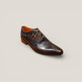 The Naples Oxford represents a modern interpretation of the classic brogue, handcrafted in Italy with hand-dyed cognac brown leather. Each pair features elegant decorative broguing and a rich antique light patina that develops a unique character over time. The refined silhouette combines traditional craftsmanship with contemporary comfort, making it versatile enough for both formal occasions and business wear.