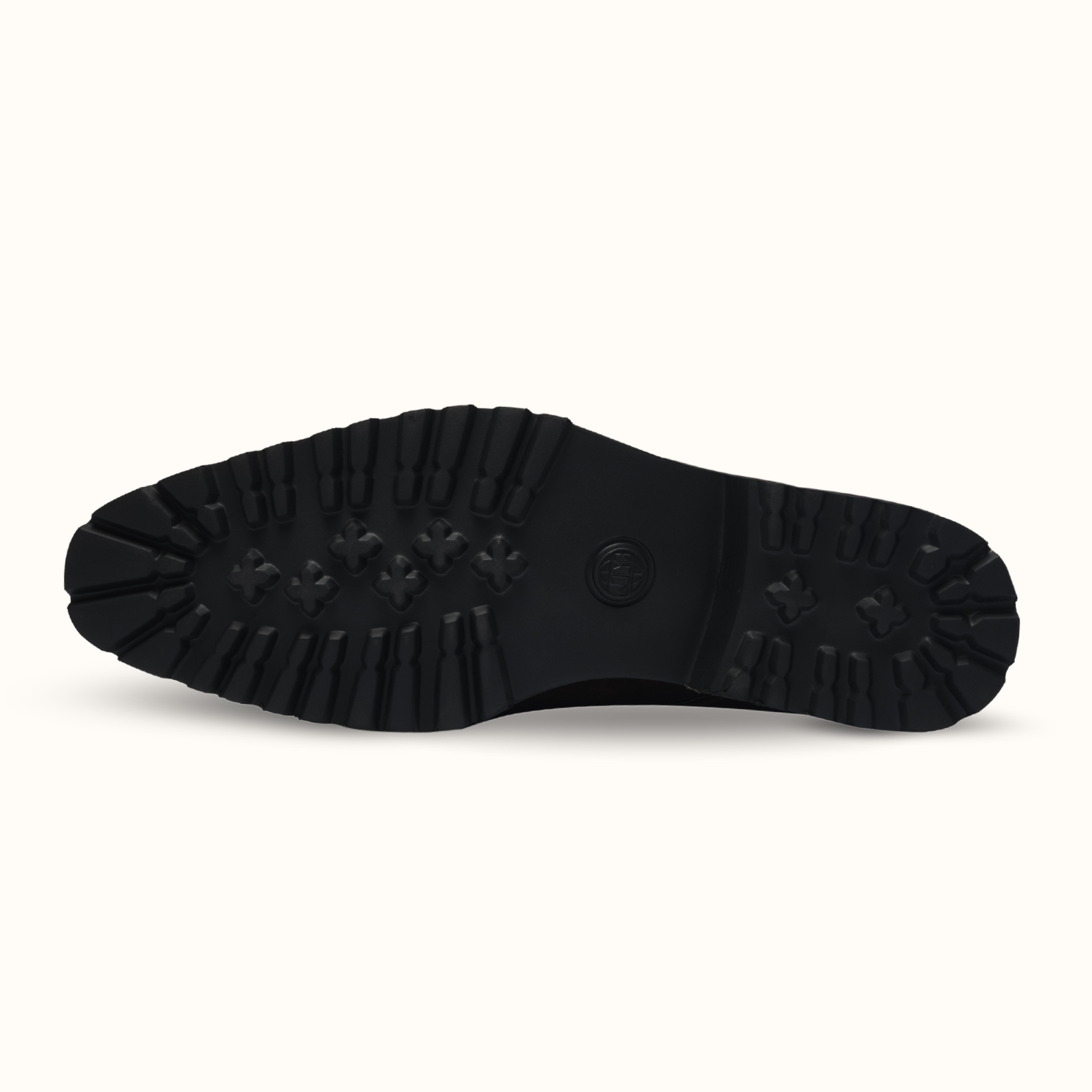 The Chelsea boot is a classic style of ankle boot characterized by its sleek, minimalistic design and elastic side panels that make it easy to slip on and off. Originating in the Victorian era, these boots typically have a rounded toe, a pull tab at the back, and no laces or zippers. Chelsea boots are versatile and timeless, suitable for both casual and formal occasions, and are often made from leather or suede.