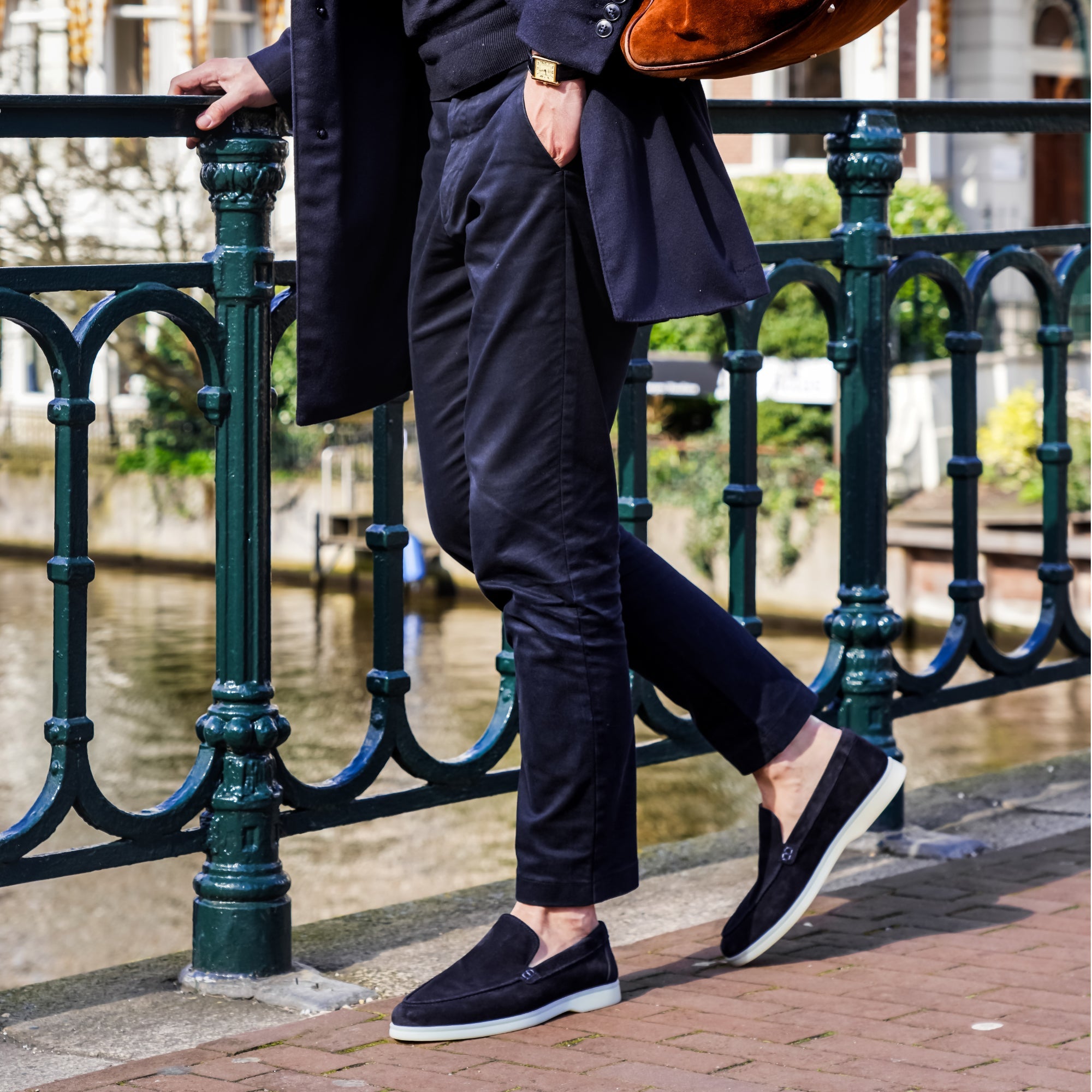 De Capri Donkerblauwe Suède Loafers belichamen handgemaakte luxe zonder het luxe prijskaartje. Deze Smart Luxury Loafers, in een verfijnde donkerblauwe kleur, worden met uiterste precisie met de hand vervaardigd in ons atelier, gebruikmakend van verantwoord ingekocht Italiaans kalfsuède.