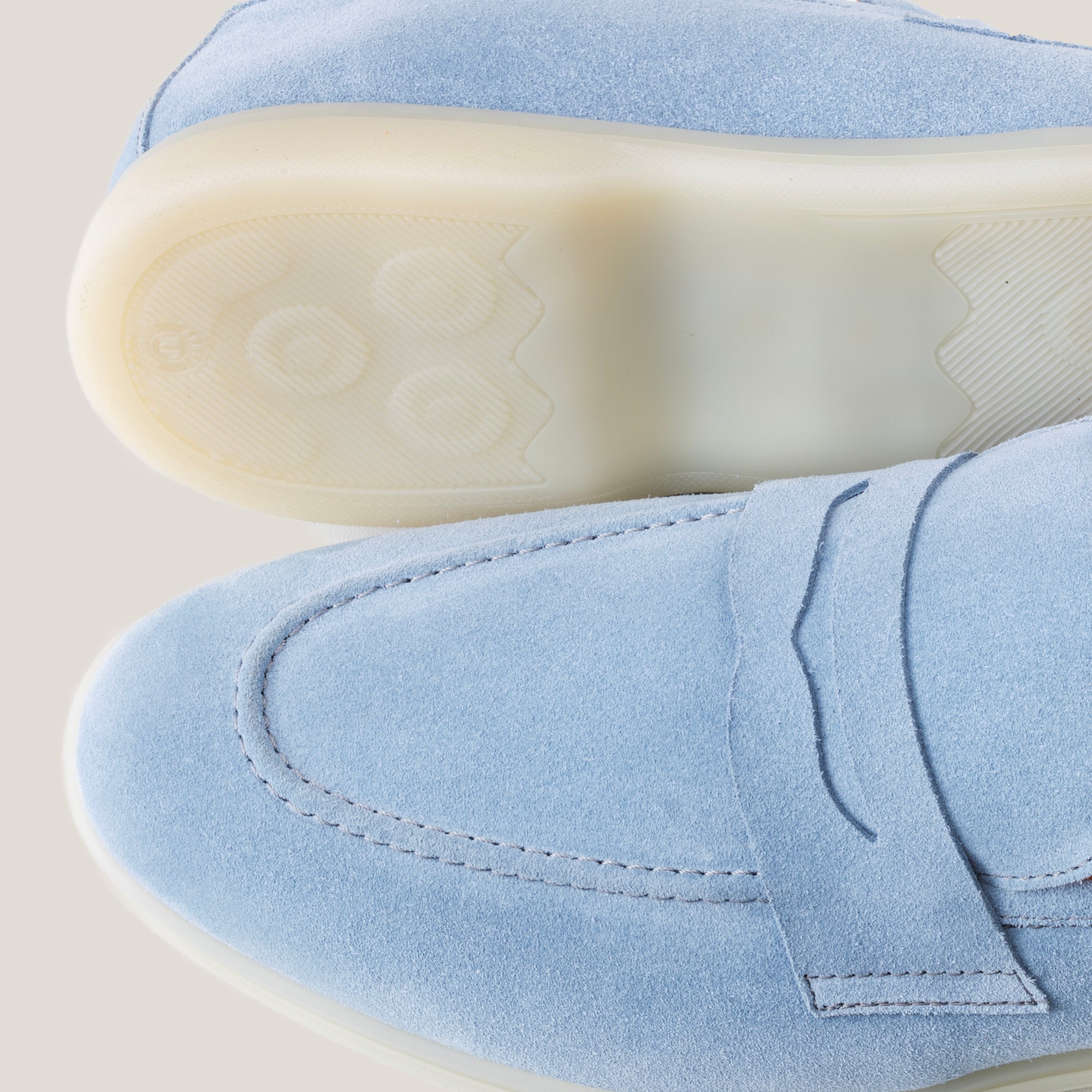De doorschijnende natuurrubber buitenzool past perfect bij de verfijnde uitstraling van het suède en versterkt de subtiele luxe-uitstraling van deze schoenen. Veelzijdig en elegant, deze loafers zijn geschikt voor zowel formele zakelijke als casual gelegenheden.