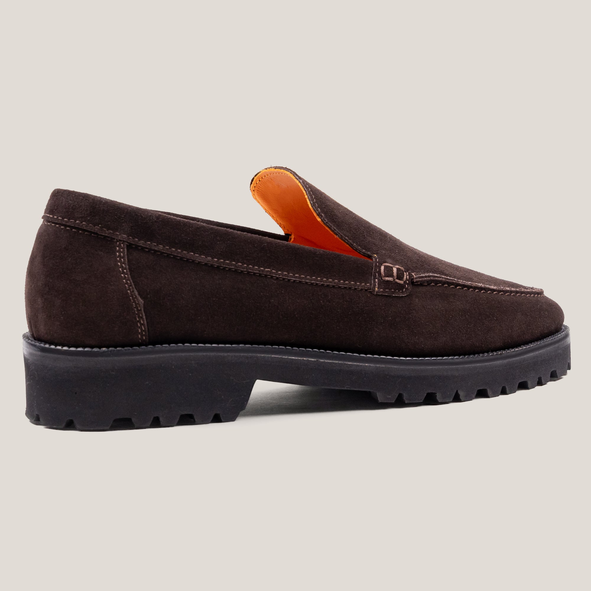 De Trento Donkerbruine Suède Loafer vertegenwoordigt smart luxury opnieuw uitgevonden voor de hedendaagse levensstijl. Gemaakt van premium 1.3mm Velve® Suède, combineren deze half-gevoerde loafers verfijnde stijl met praktische duurzaamheid.